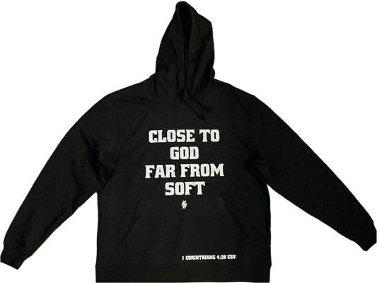 Close To God Far From Soft (1 Corinthians 4:20) Hooded Sweatshirt